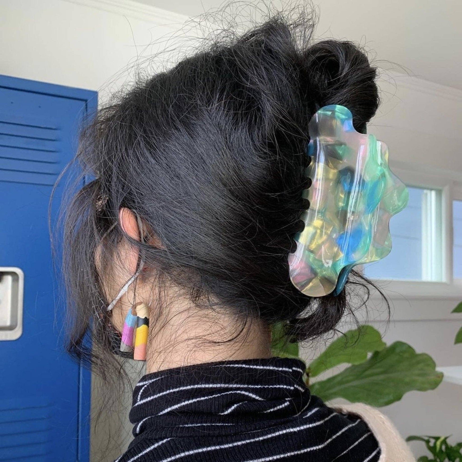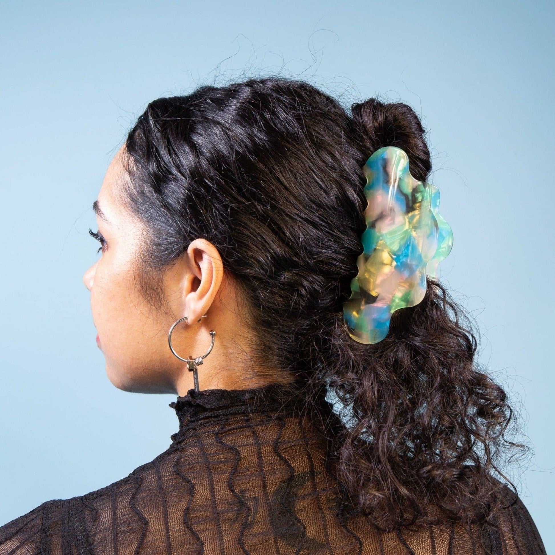A bestseller and editor fave. This large hair claw clip works like a dream on all hair types and textures. Perfect for medium to longer hair lengths. Made from high-quality acetate; a durable, plant-based bio-plastic. Metal hardware is lead and nickel-free. Slight variations will appear with pattern, color, and form due to the handmade nature of the product.
